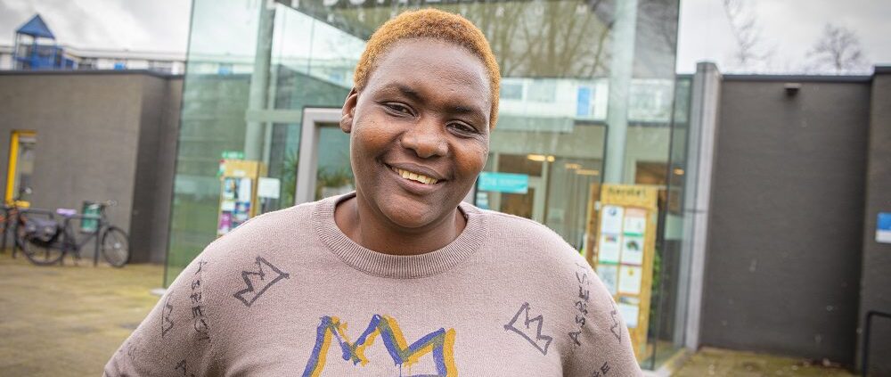 Violet Chebande is gastvrouw bij buurthuis Het Buitenhuis in Delft. Ze is het aanspreekpunt voor bezoekers, verzorgt de koffie en thee en zorgt ervoor dat de ruimtes netjes zijn. Dankzij deze werkervaringsplek ontmoet ze veel mensen én oefent ze haar Nederlands. ‘Het is een stuk leuker dan thuis zitten.’